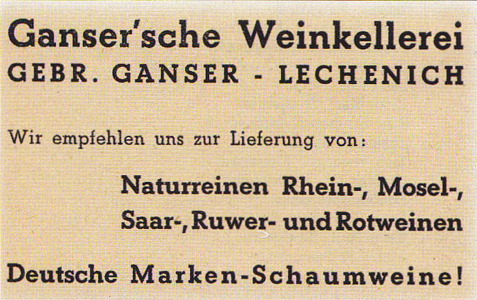Ganser in Lechenich, Oswald Ganser in Leverkusen-Wiesdorf. Braunmeister:
