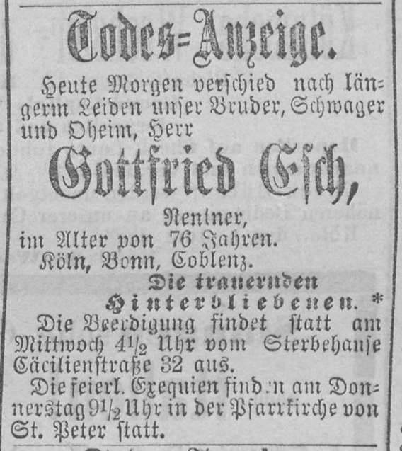 aus dem Jahr 1886, erschienen im Kölner Sonntags-Anzeiger, Ausgabe 530