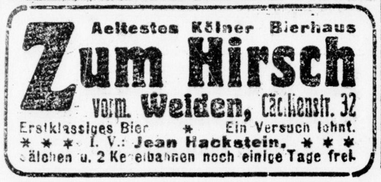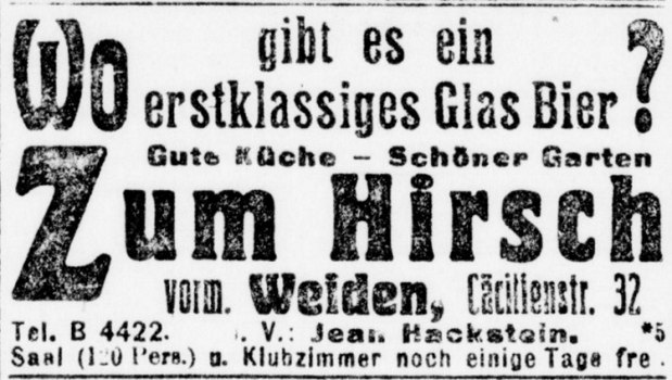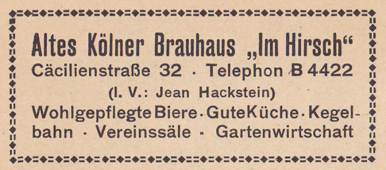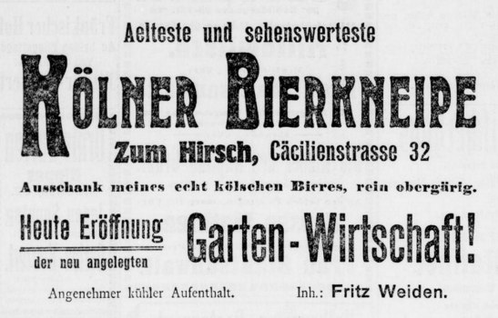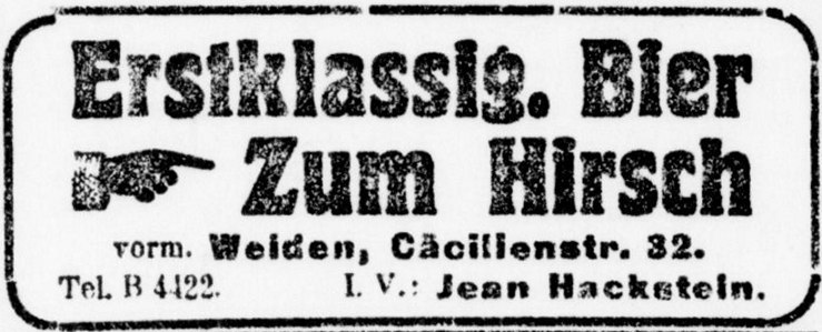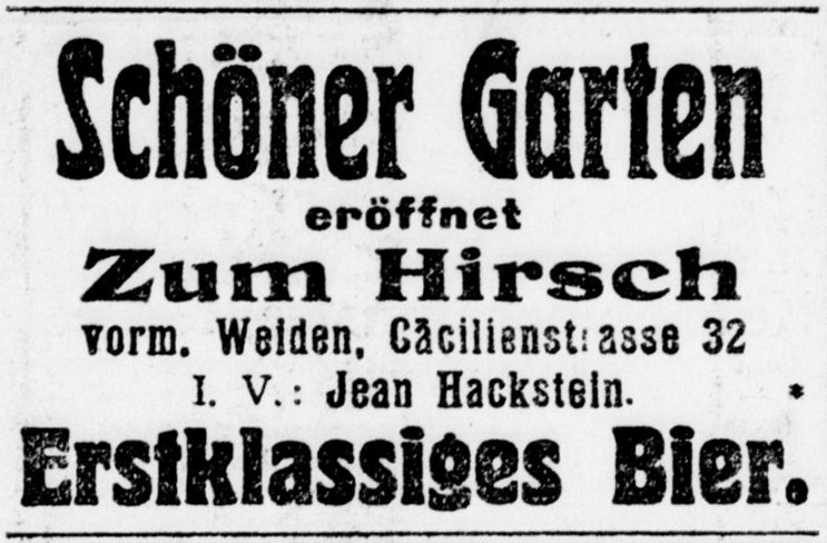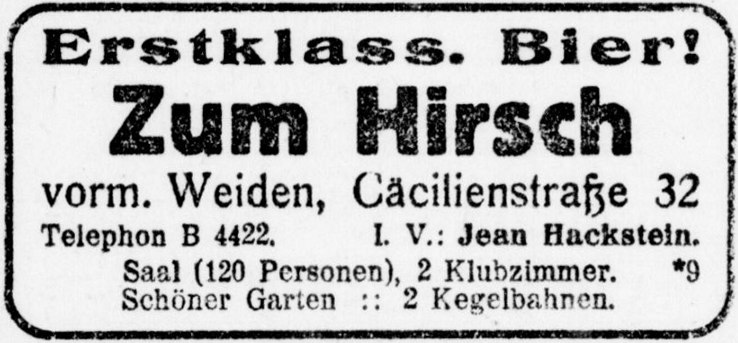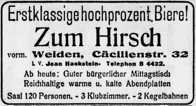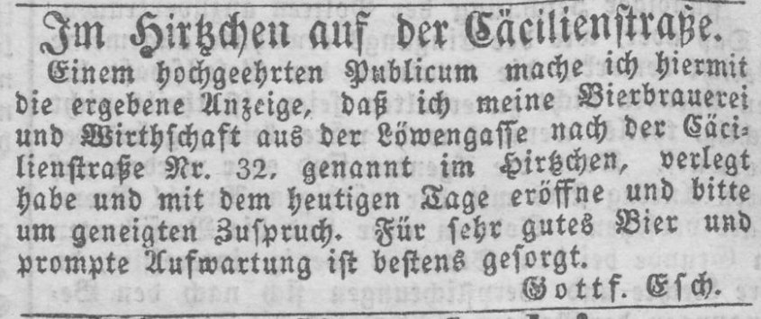 Hirschen“ in der Cäcilienstraße, wie es korrekt in dieser Zeit hieß, als es