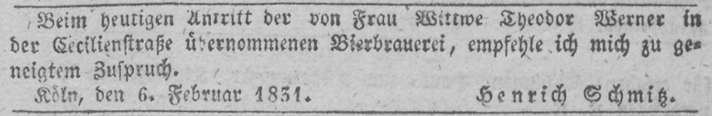 Schmitz verheiratet gewesen, welcher vermutlich die Brauerei mit in die Ehe