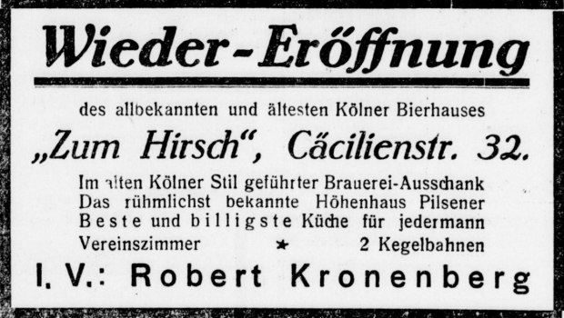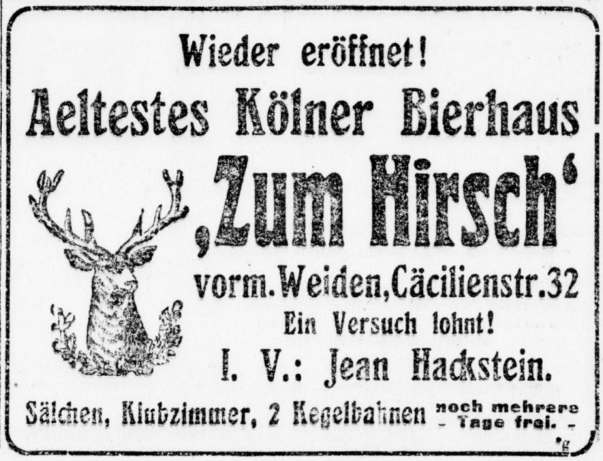 Es gab in Köln ein weiteres Brauhaus "Im Hirsch" mit