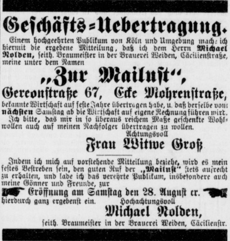 Köln, übernahm erst die Restauration und eröffnete ein Jahr später wieder