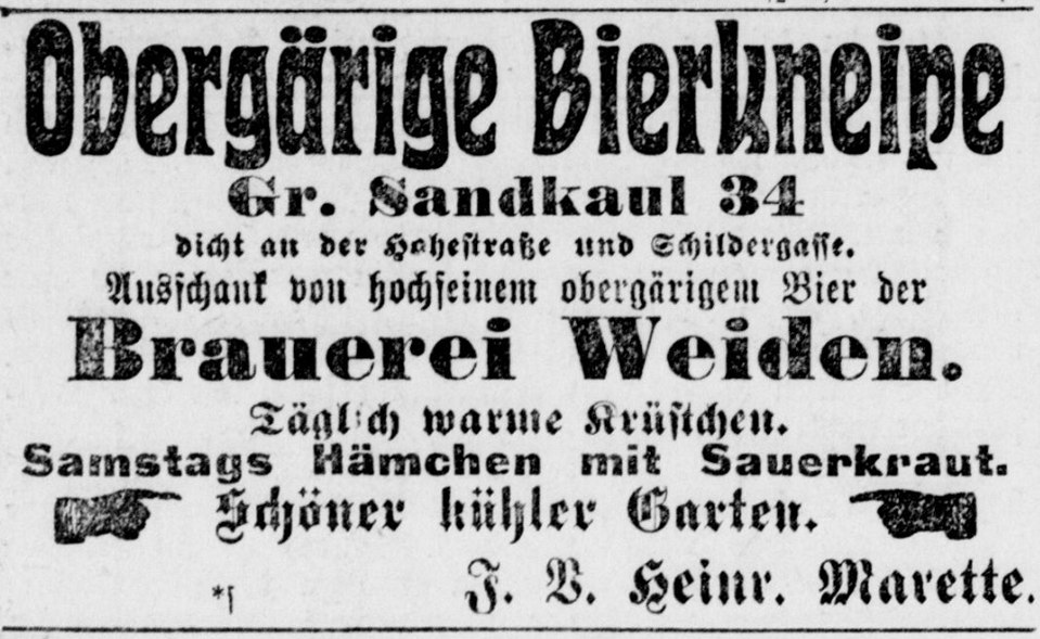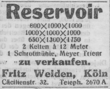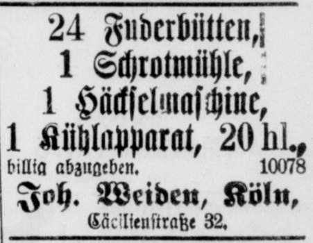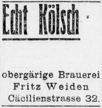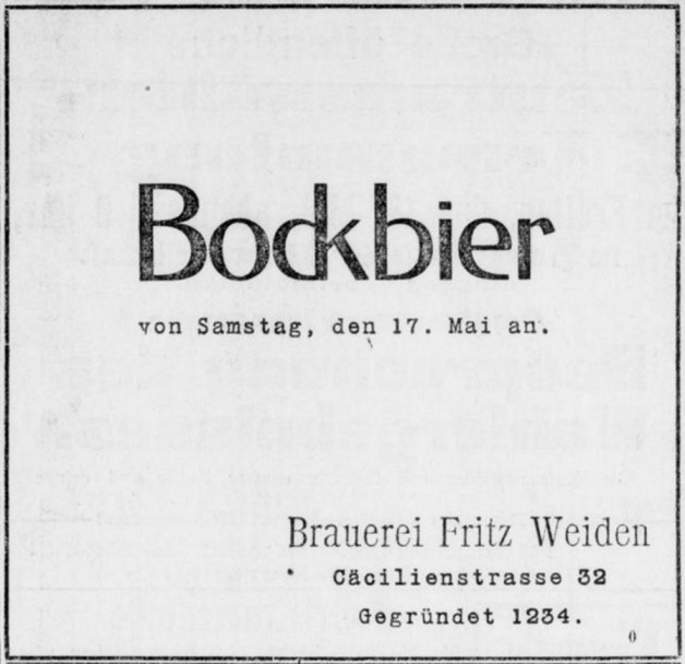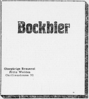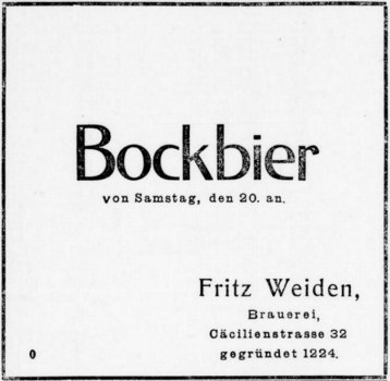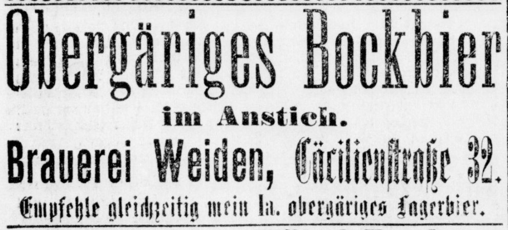 Werbeanzeigen ist nur "Brauerei Weiden" und keine Adresse angegeben.