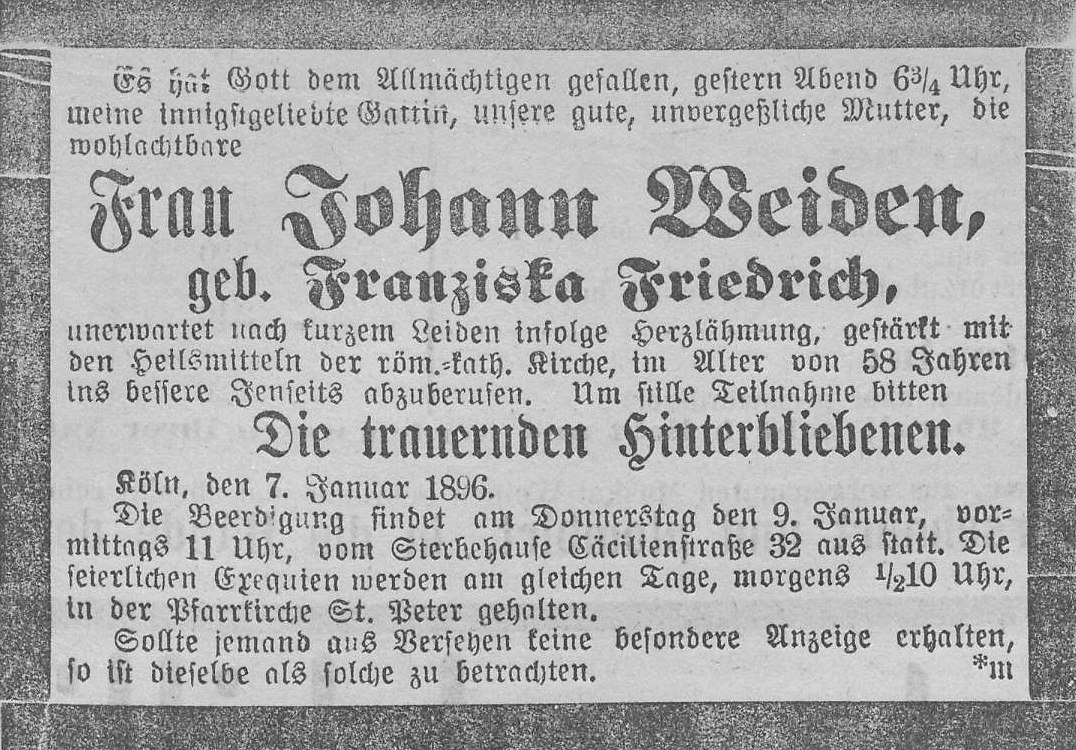 ebenfalls aus Köln stammenden und ebenfalls verwitweten Wilhelm Heinrich