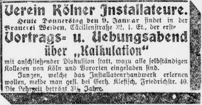 Nachweis hierzu stammt aus dem stammt aus dem Kölner Adressbuch des Jahres