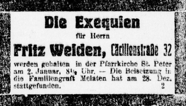 Jahr 1917 Fritz Weiden. Im Anschluss wurde nur noch eine Restauration