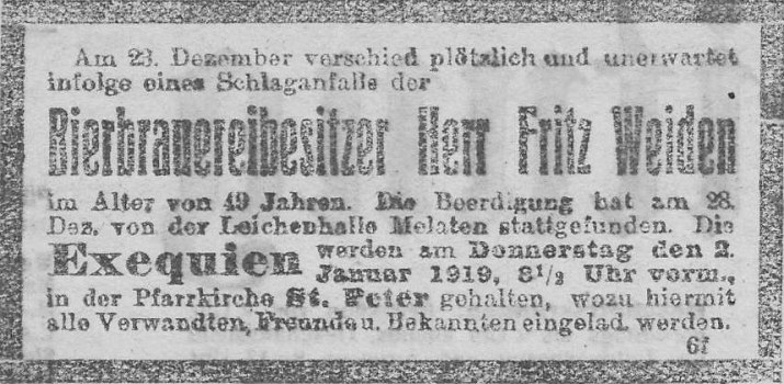 1917. Oft wurde die Brauerei als "Brauerei Weiden" bezeichnet und nicht