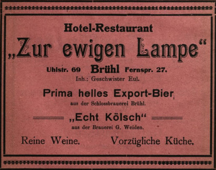 bis 1928, eine "Brauerei Weiden" am Weidenbach 24. Auf einigen