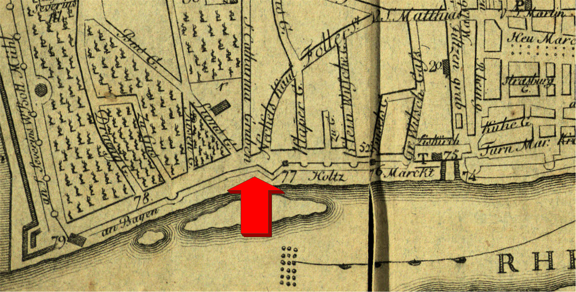 Rheinpegels eingetragen waren. Die wurde bei extremen Wasserständen