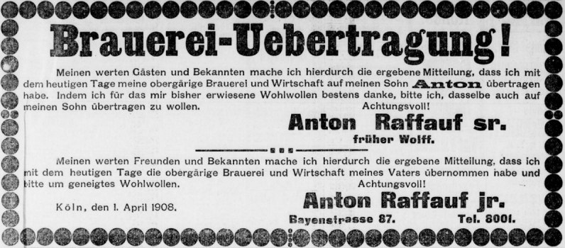 Auch in Köln gab schon wesentlich früher eine Brauerei gleichen Namens.