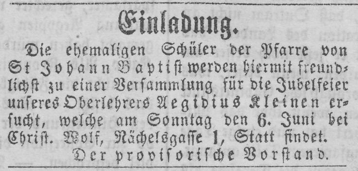 Jahr 1836 wird Johann Schumacher, obwohl es in der Anzeige ausschließlich um