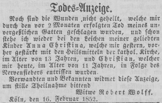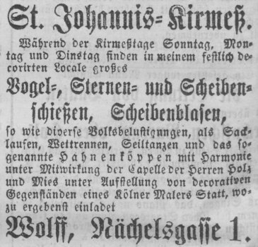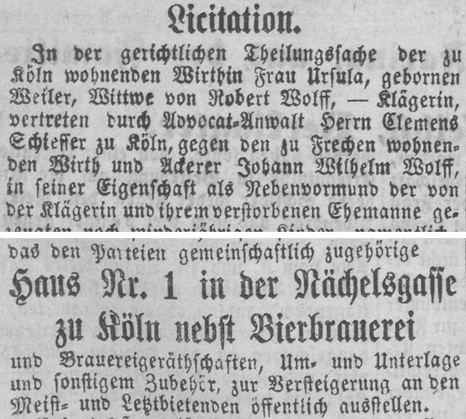 Anzeige in der Kölnischen Zeitung bekanntmachte:
