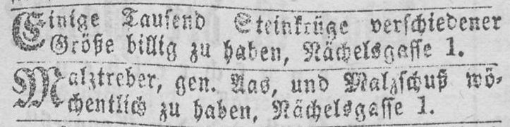 Anzeige, daß ich von Herrn Schumacher am Nächelsthor Nr. 1 die Bierbrauerei