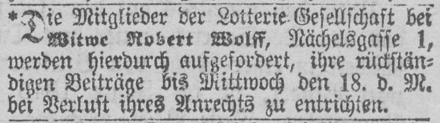Der erste Brauer der Brauerfamilie Wolff, welche die Brauerei in der Nächelsgasse insgesamt 63 Jahre führte, war Robert Wolff. Am 18. Februar