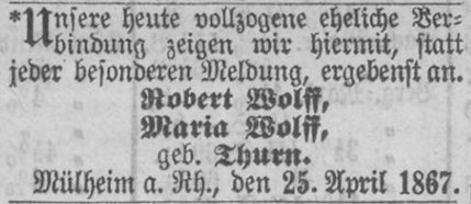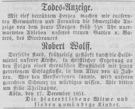 Robert Wolff, geboren im Jahr 1806, war mit Ursula Weiler
