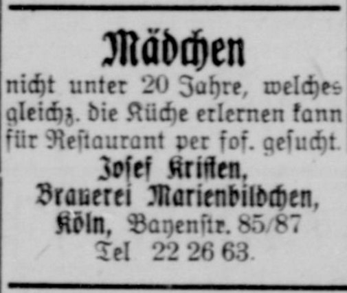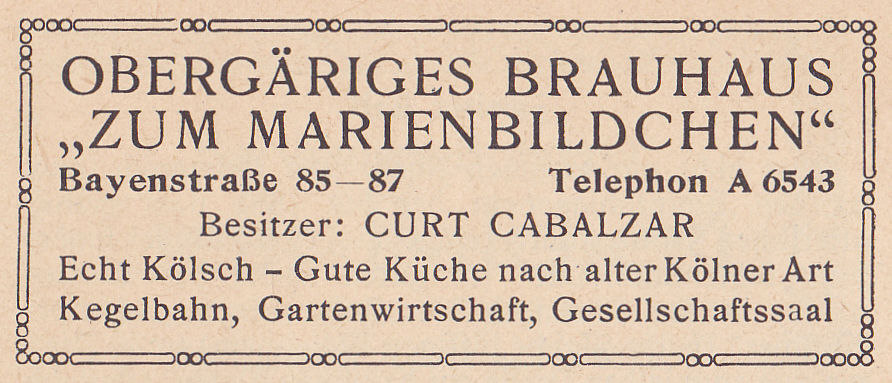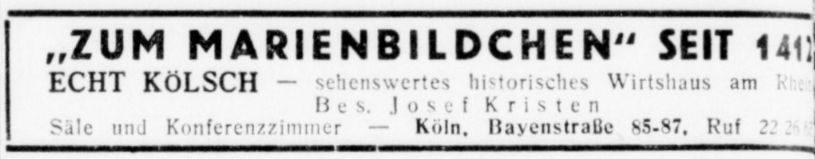 "Zum Marienbildchen" von 1913-1919, führte von 1918-1931 auch die