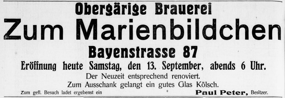 "Prosit Colonia" [28] beginnt die Historie der Brauerei „Zum Marienbildchen“ im Jahr 1895.