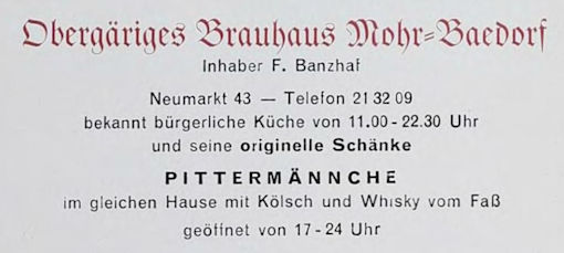 Gemeinsam Anzeige der Kölner Hausbrauereien aus dem Jahr 1939