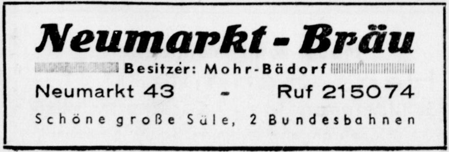 Anzeige des Neumarkt-Bräu aus dem Jahr 1940