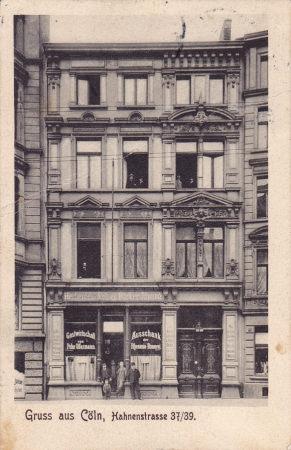 Postkarte der Gaststätte von Peter Offermann auf der Hahnenstraße 37/39,