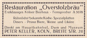 Werbeanzeige der Restauration Overstolzbräu aus dem Jahr 1921.