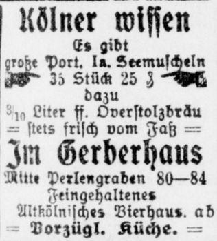 Die nächste Erwähnung nach der Gründung findet sich in den Geschäftsberichten der Adler-Brauerei, ebenfalls aus Köln-Ehrenfeld