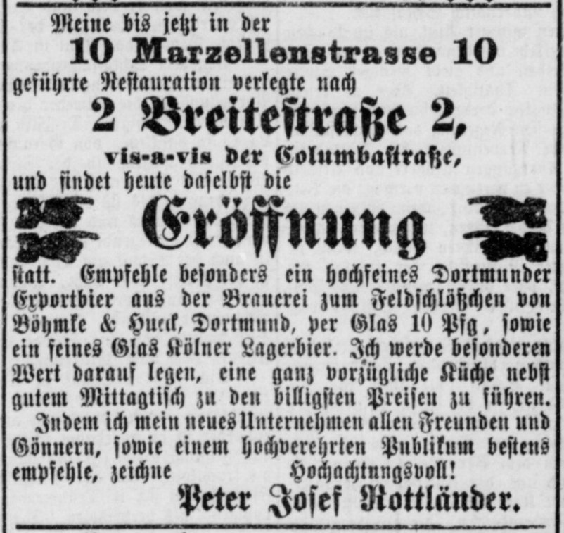 cr. eröffnete ich in dem Hause Marzellenstraße Nr. 10 eine Kölner