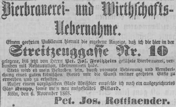 „Rottländer“ auf der Rösrather Straße 546/548 gegründet und diese