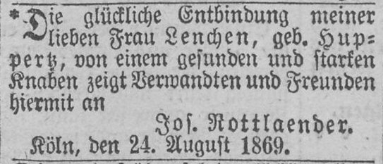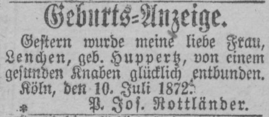 Rottländer Junior heiratete also im Jahr 1871 die ebenfalls aus Rath/Heumar