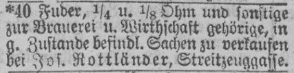 Anzeige zur Übernahme der bestehenden Brauerei in der Streitzeuggasse 10 aus