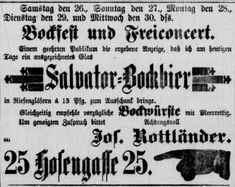 auch der nachstehenden Anzeige zum Anlass des „Bockfestes mit Freiconzert“