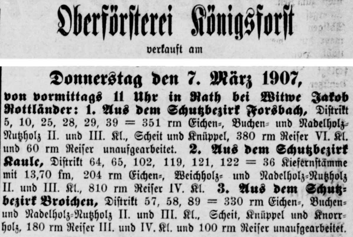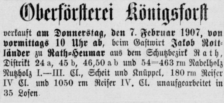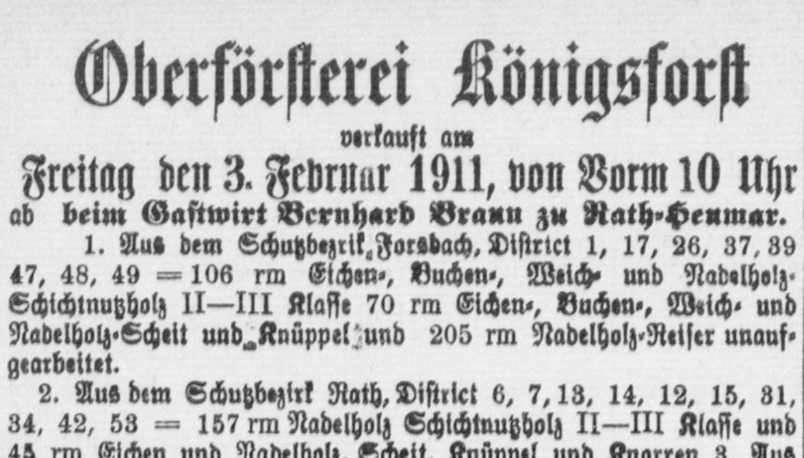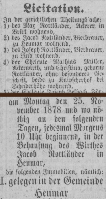 entsprechend aufgeteilt werden konnte, dieses versteigert wurde. Eine solche Licitation fand im Jahr 1873 bei „…dem zu Rath bei Mülheim am Rhein