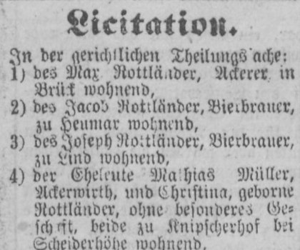 3) des Joseph Rottländer, Bierbrauer, zu Lind wohnend,