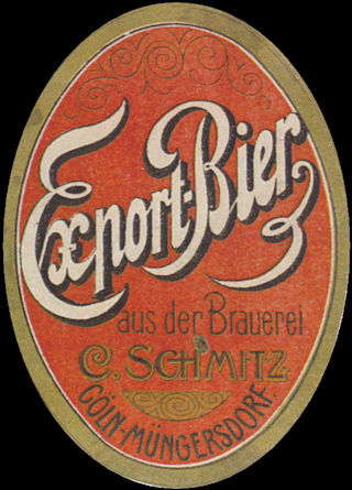 "Lagerbier aus der Brauerei C. Schmitz, Köln Müngersdorf"