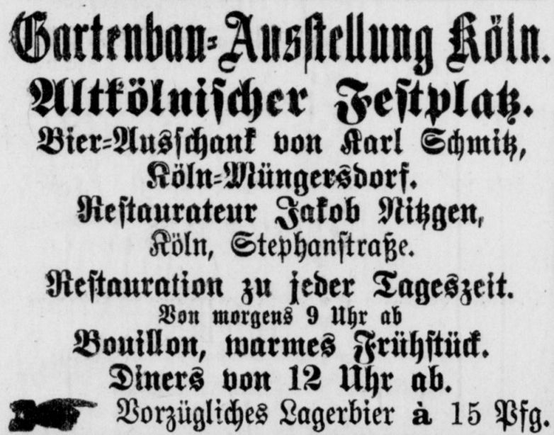 Bierbrauerei von Schmitz in Müngersdorf, Restaurateur Herr Heinrich Mestrum,