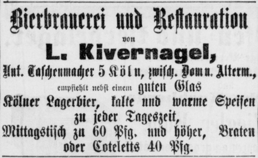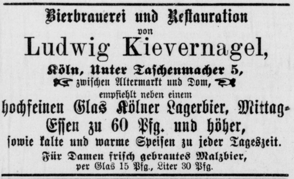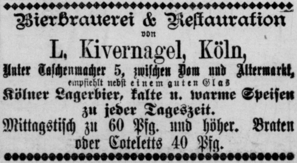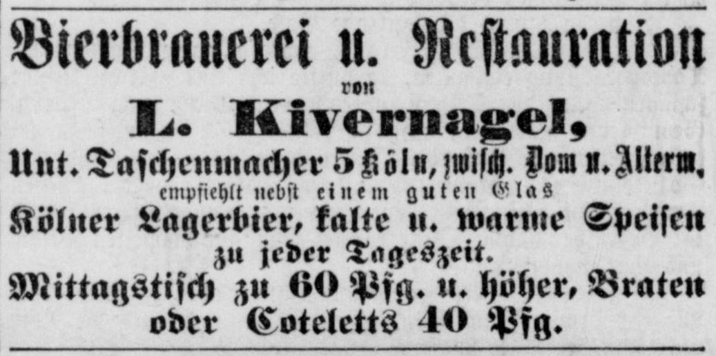 der Kölnischen Zeitung wird das Brauhaus Unter Taschenmacher 5 inkl. der mit