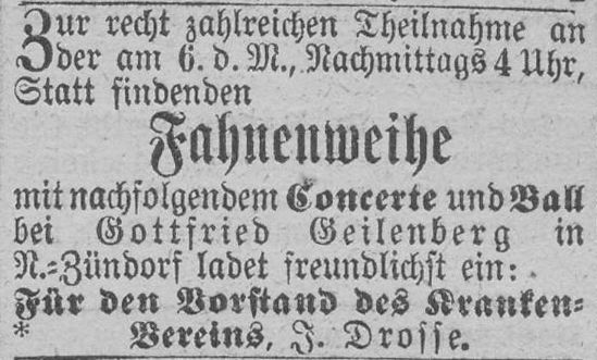Der Vorstand des Kranken-Vereins lädt zur Fahnenweihe in das Lokal von