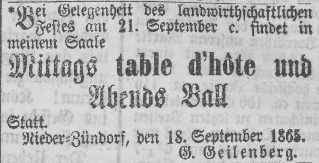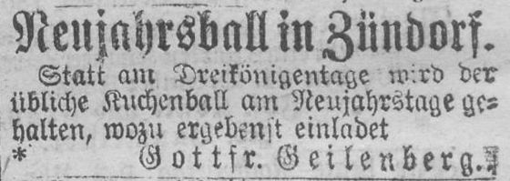 In den Folgejahren tritt Gottfried Geilenberg nur durch Anzeigen zu besonderen Anlässen wir der Zündorfer Gottestracht (Fronleichnams-Prozession, nach der man gerne einkehrte), Kirmes oder Sylvester in Erscheinung.