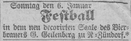 Einladung zum Neujahrsball durch Gottfried Geilenberg. Anzeige aus dem Jahr