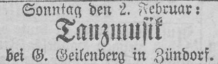 Einladung zur Tanzmusik durch Gottfried Geilenberg. Anzeige aus dem Jahr