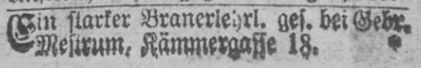 Brauerbursche gesucht. Anzeige von Heinrich Mestrum aus dem Jahr 1874
