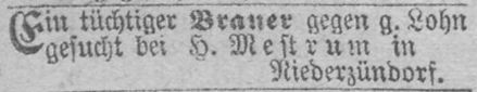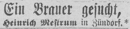 Ein Brauer gesucht. Anzeige von Heinrich Mestrum aus dem Jahr 1874