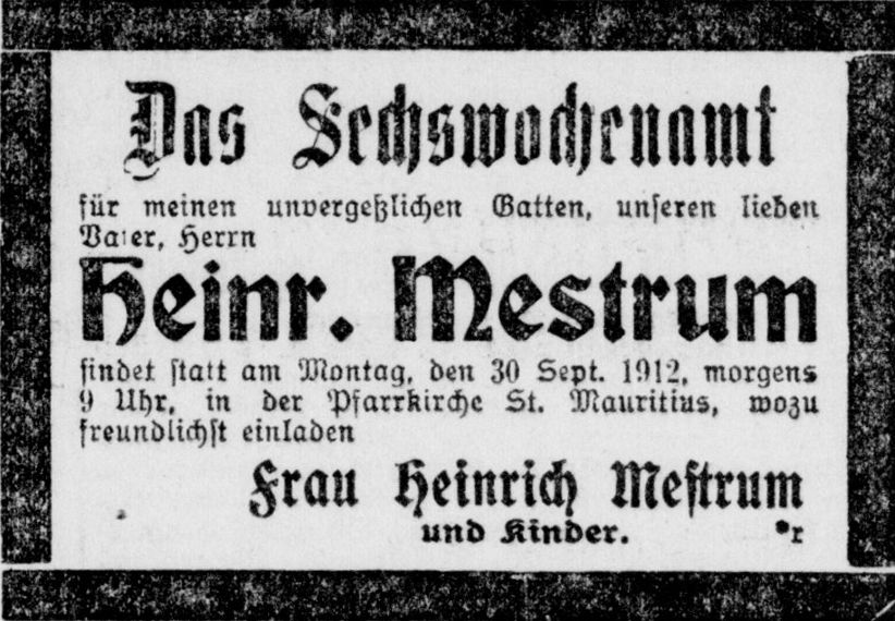 Heinrich Mestrum starb im Jahr 1912 im Alter von 64 Jahren.
