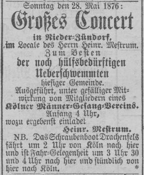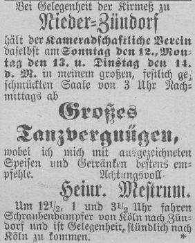 den Weg nach Zündorf finden. Anzeige aus dem Jahr 1874