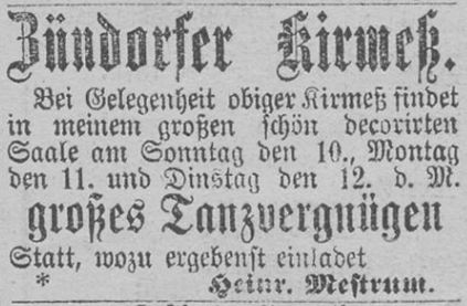 einer Anzeige zur Niederzündorfer Kirmes im Jahr 1864