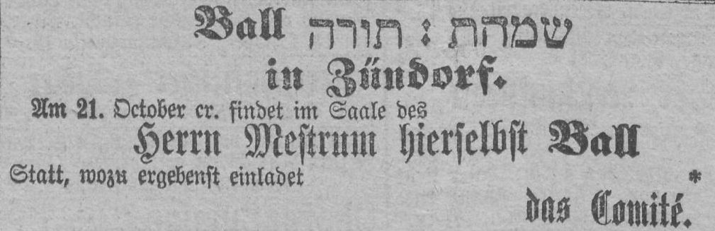 Einladung zum Ball anlässlich der Zündorfer Gottestracht. Anzeige aus dem