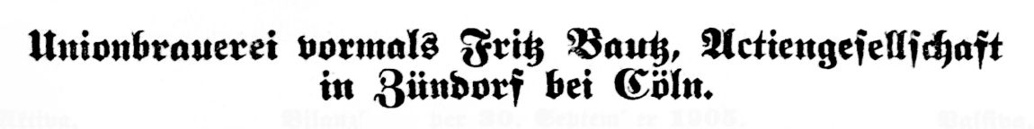 [7, 02.08.1920] „…Dresden. Auf Blatt 15837 des Handelsregisters ist heute die Aktiengesellschaft Unionbrauerei vormals Fritz Bautz Aktiengesellschaft mit dem Sitze in Dresden, früher in Zündorf bei Köln und weiter folgendes eingetragen worden: Der Gesellschaftsvertrag ist am 3. März 1900 festgestellt und durch Gesellschaftsbeschluß vom 22. Juni 1920 in $ 1 hinsichtlich des Sitzes der Gesellschaft geändert worden. Gegenstand des Unternehmens ist