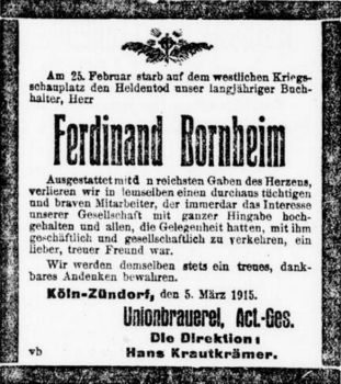 Ab dem Jahr 1873 führte Heinrich Mestrum dann auch die Brauerei in Nieder-Zündorf.