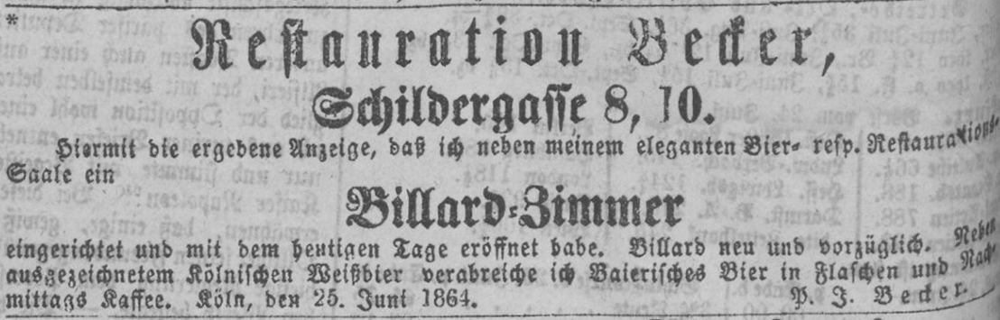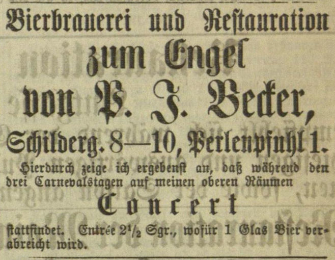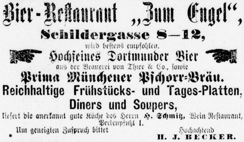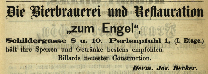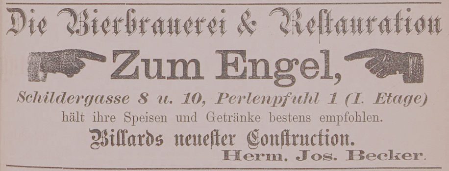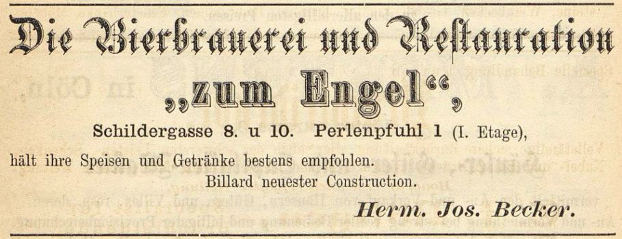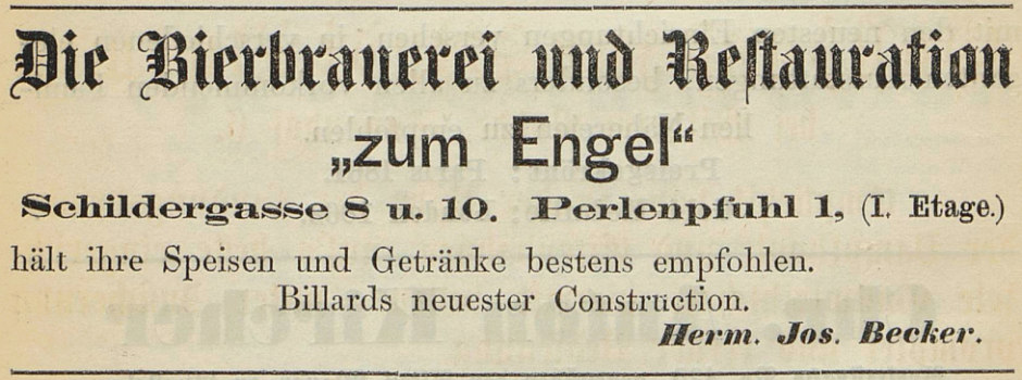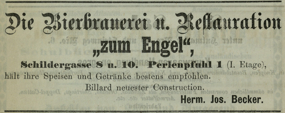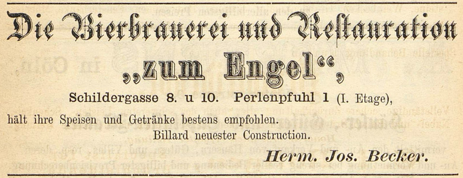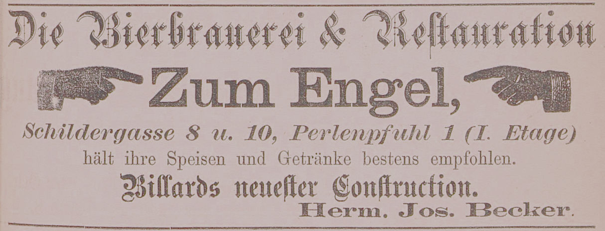 des Bier-Restaurant „Zum Engel“ in der Schildergasse 8-12.