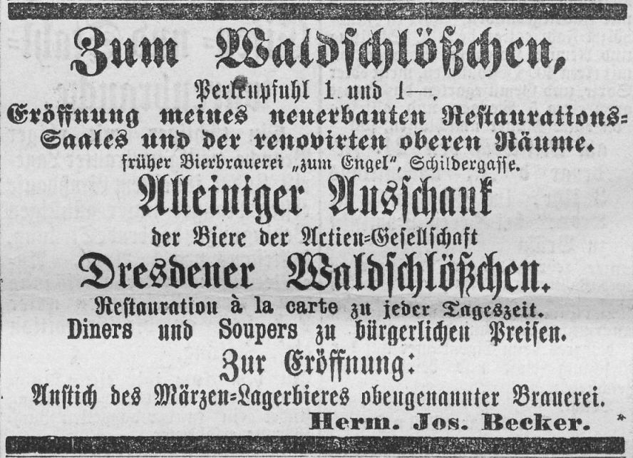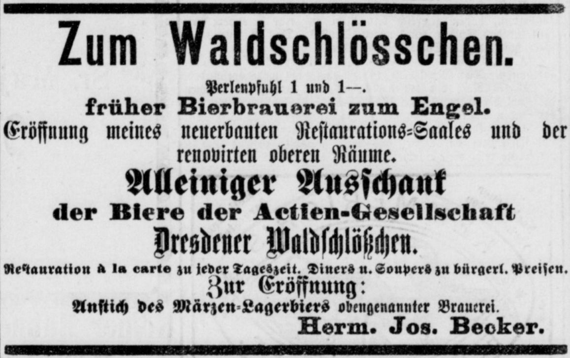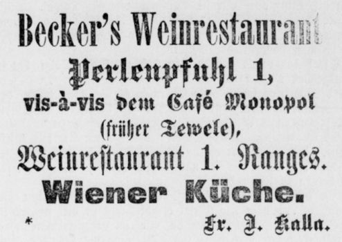 Anzeige von "Becker's Weinrestaurant" aus dem Jahr 1891